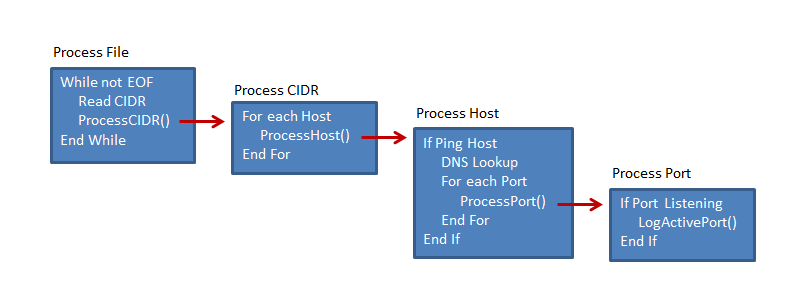 Given a file containing network addresses (in CIDR format) the application must check every host within the network address range and